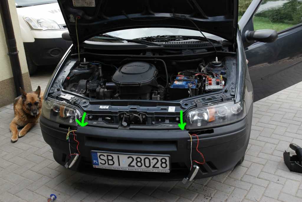 Nowe mocowanie (pół ucha), teraz znajduję się w miejscu pokazanym zieloną strzałką i trzyma się górnej części zderzaka przy pomocny śrubek. Załącznik: