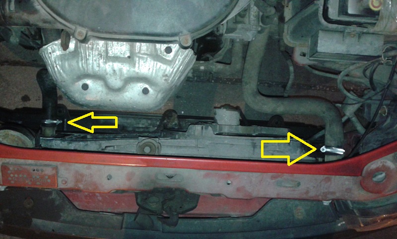 Zaczynamy od oderwania starych zatrzasków na rurach od chłodnicy, spuszczenia starego płynu i przepłukania jej bierzącą wodą: