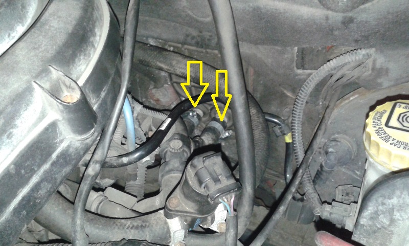 Na zdjęciu widać dwie rurki, musimy je odłączyć. Idą ode do nagrzewnicy