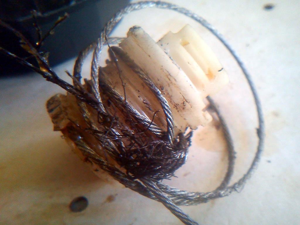 Mechanizm korby oczywiście też jest mokry po każdym myciu lub deszczu. Dlatego linki i ich pancerze rdzewieją, linki się zrywają, prują.