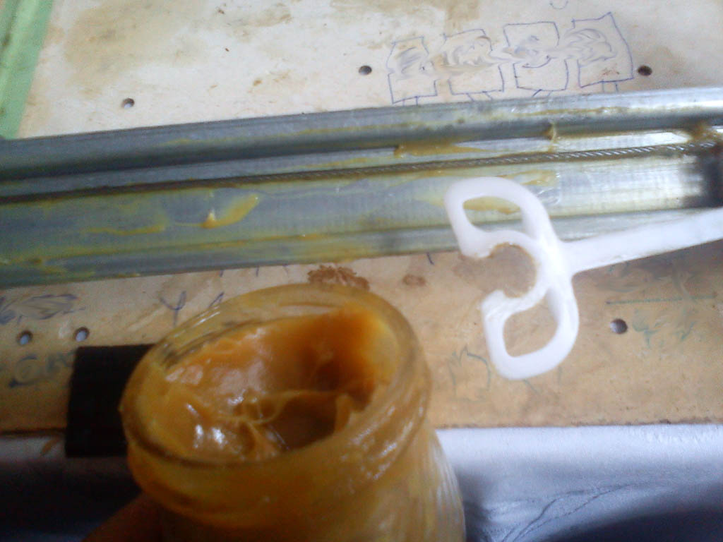 Nawalić dużo smaru (listwa, ślizg, linki na całej długości, mechanizm korby - bęben/rolka). Gdyby nie kapiąca woda, to teoretycznie powinno to pracować na sucho. Ale niestety.