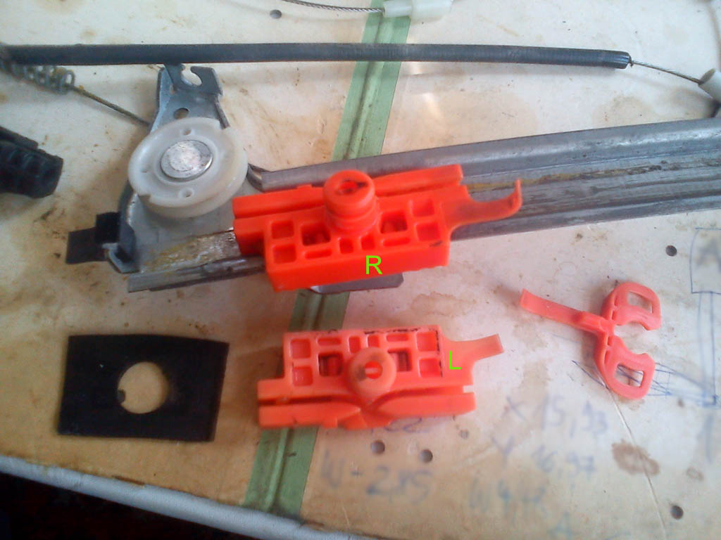 Jeśli wymieniacie ślizg, to zwracać uwagę na zamocowanie linek (która wyżej, która niżej przebiega) oraz przełożyć podkładkę (czarna pianka). Górna linka (idzie przez rolkę na listwie prowadzącej szybę) jest krótsza (pancerz też), dolna dłuższa.
