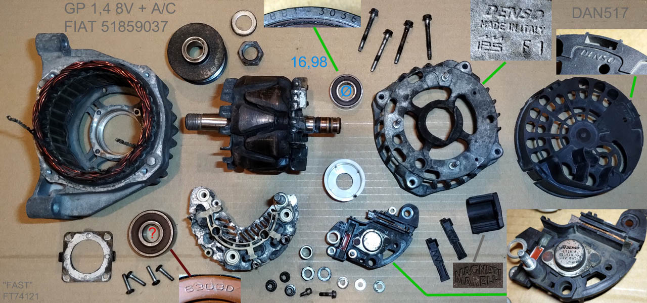 Stary Denso rozbrojony. Podobno kiedyś był "regenerowany" już. Wszystko "Denso", a osłonki szczotek "Magneti-Marelli"...