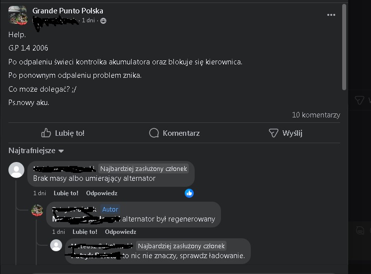 Uwaga ciekawostka. Na zamienniku FAST (FT74121) trzeba koniecznie zaczekać przed odpaleniem, aż kontrolki pogasną. Jak się nie czeka, to wywala kontrolkę akumulatora i odcina wspomaganie...mimo, że alternator "wstaje" (wzbudza się -
