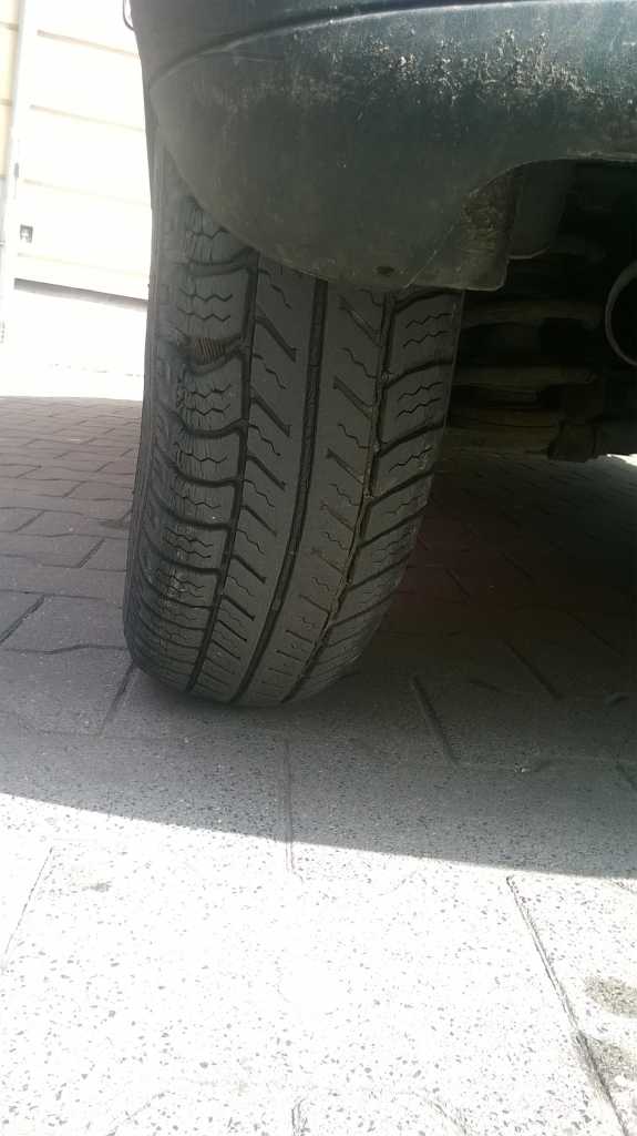 właśnie od 3 tygodni gdy jeżdżę mam wrażenie, że auto mi lekko podskakuje gdy jadę... myślałem, że to złudzenie, a dziś przypadkiem patrze na oponę i jest krzywa z jednej strony, powtarzam, krzywa tylko z jednej strony. wklejam zdjęcia.