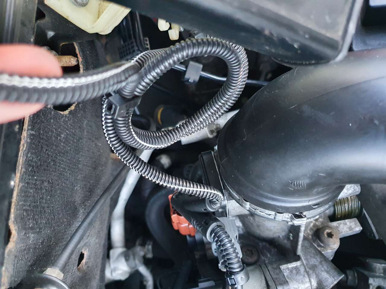 Mam jeszcze takie cudo widoczne na zdjęciu poniżej, nie wiem co to jest, obstawiam że jakiś "tuningbox" bo na nic oryginalnego mi to nie wygląda, wpięte pod czujnik położenia przepustnicy. Jak to tylko odpiąłem to wyskoczył mi check engine więc wolałem najpierw zapytać.