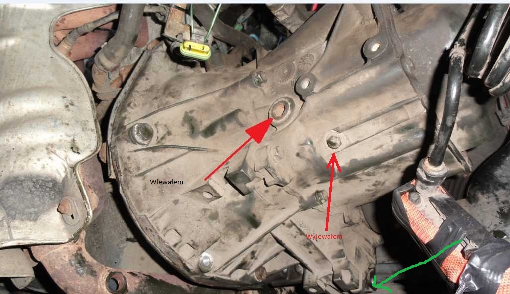 lioton napisał(a): Tylko nie pytajcie czy zakręciłem korek od spustu i czy wlewałem tam gdzie trzeba  A jednak...  Czułem to w kościach  Jakbyś tam wlewał aż sie zacznie przelewać to ekhm... wlej do silnika 10l oleju i zobacz co sie stanie W skrzyni od nadmiaru oleju simmeringi mogą Ci puścić, w szczególności ten na wałku sprzęgłowym, bo jest lichy że tak powiem a jego wymiana to zachodu wiecej niz z wymianą sprzęgła które też trzeba wymienić po zalaniu olejem  Spuszczenie nadmiaru - wystarczy odkręcić ten korek i sam nadmiar wyleci... jak mniej intensywnie będzie będzie lecieć to w tym momencie zakręcić. wchodzi ok. 1,65 i nie ma innej opcji. Odpowietrznik nie służy do nalewania oleju, od tego jest wlew. To jak wlewanie oleju do silnika przez dziurkę bagnetu czy odmę przez puszkę filtra powietrza.