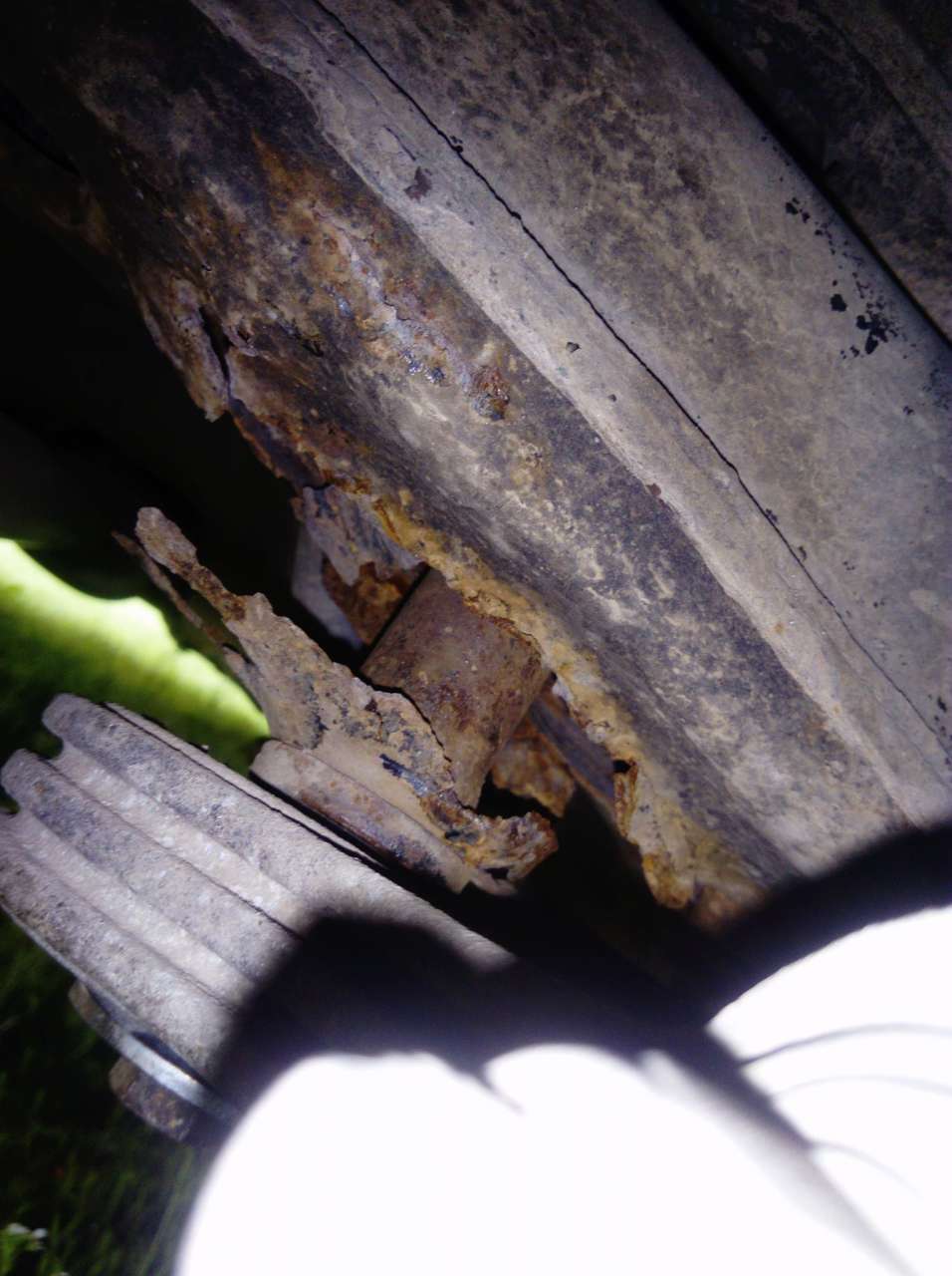 Bardziej się przejmuj tą poduszką ("lizakiem") skrzyni. Wyrwało ją z belki przedniej ("wózka").