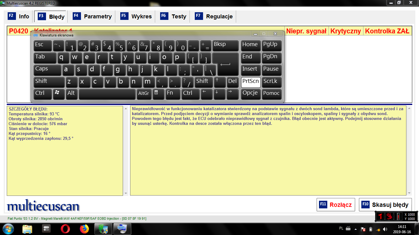 Po wkręceniu emulatora sondy nie wyskakuje już błąd silnika