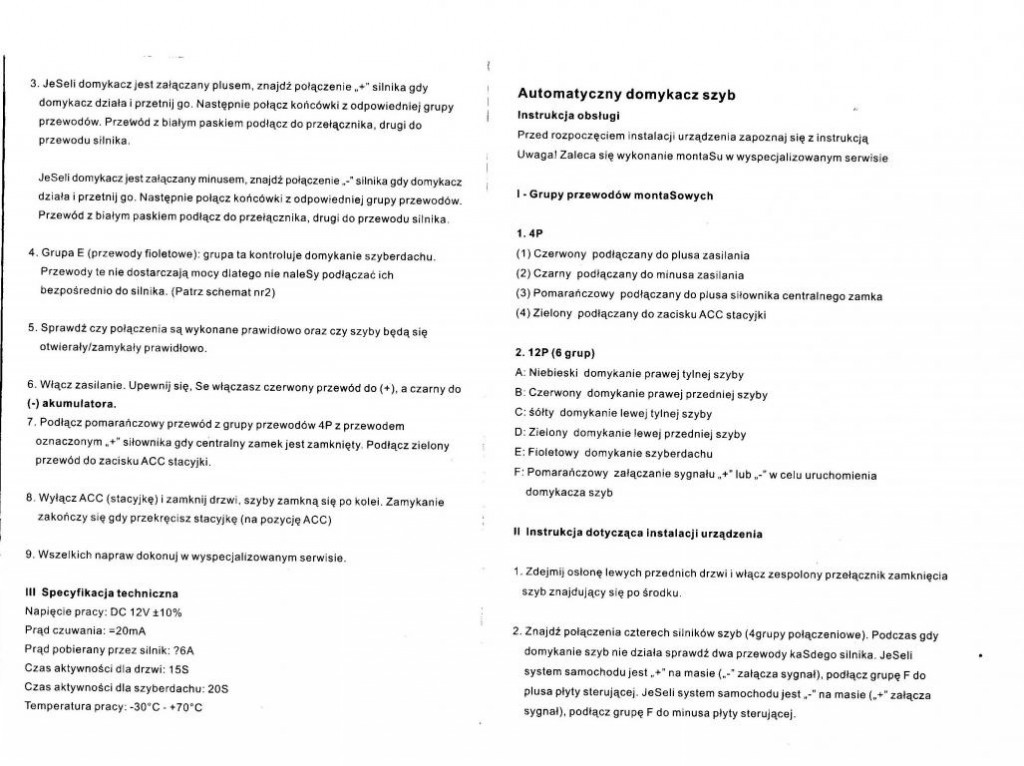 "Instrukcja powinna pasować do PI w wersji ELX, SX i innych z fabrycznymi elektrycznymi szybami.