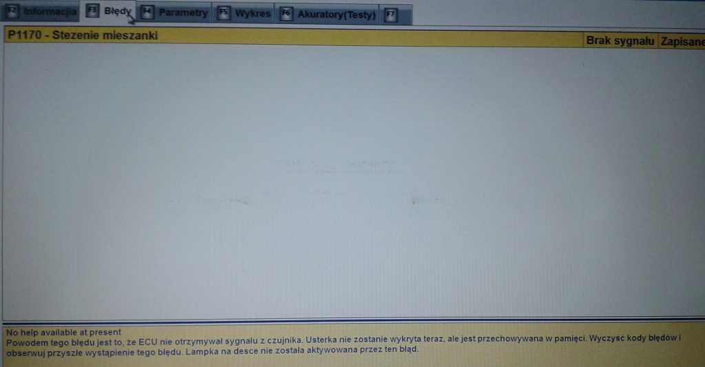 04 Gru 2013, 11:37; Temat postu: Błąd P1170 Stężenie mieszanki - brak sygnału |