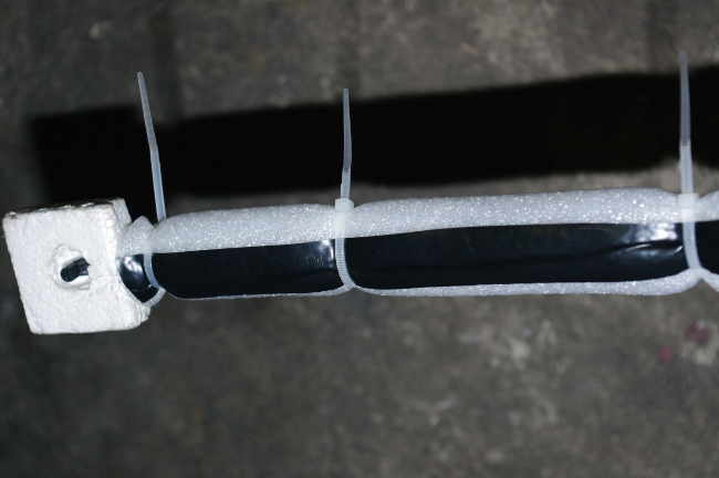 Opaskami zaciskowymi delikatnie łapiemy co 10 cm. Nie obcinamy ogonków, zostaną użyte do przyklejenia naszego rulonu do zderzaka (użycie bezpośrednio kleju na gorąco na folii piankowej spowoduje jej uszkodzenie i utratę właściwości izolacyjnych). Załącznik: