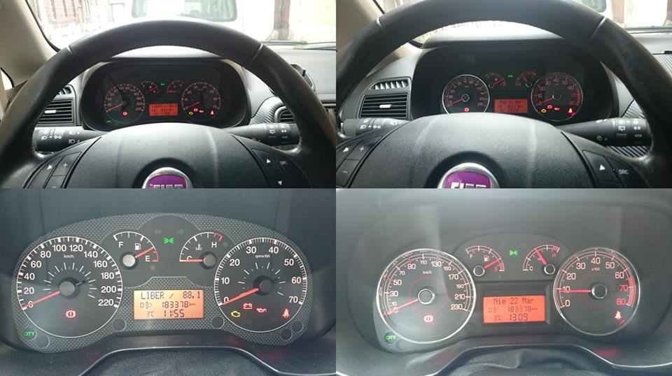 Widzisz kosmodron tylko że kolega ernestwidelec ma nierozbudowany wyświetlacz w oryginale. Ernestwidelec kup rozbudowany licznik z białą płytą http://allegro.pl/licznik-zegary-europa-1-2b-fiat-grande-punto-06r-i5206899080.html i przerzuć ramkę wskazówki i cyferblat i sprzedaj licznik który Ci zostanie, proste  .Rozbudowany jest fajny, pojawia się dodatkowy licznik kilometrów, temperatury, funkcja autoclose i informacje po polsku, jakie radio, które drzwi otwarte, która żarówka przepalona itp. Fesem zosiuj ustaw przelot taki jaki był i będzie cacy.