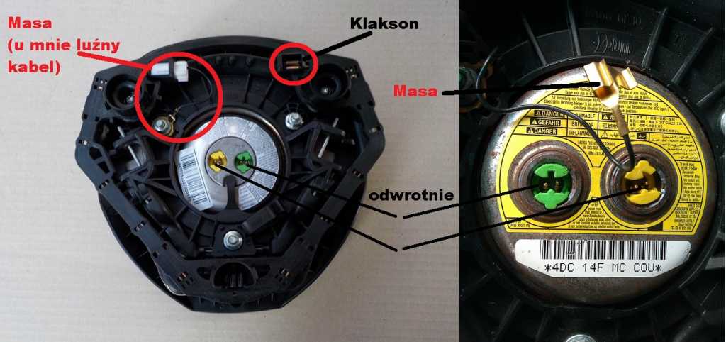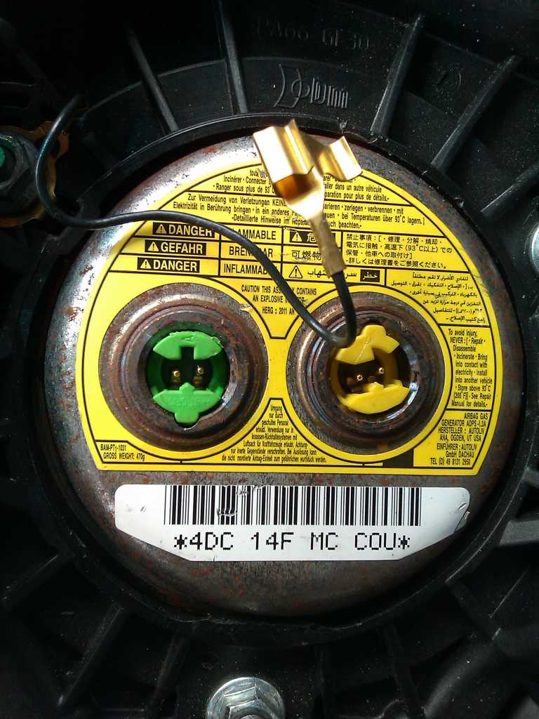 Mam problem: kupiłem na giełdzie poduszkę powietrzną kierowcy. Była regenerowana z tego co widzę, są inne podłączenia, ale i inny nabój. Oddać nie mogę, jak to na giełdzie... Ma ktoś jakiś pomysł czy taką podłączać czy lepiej nie ryzykować? Raczej się tym zajmują, to powinni wiedzieć co robią, nie? Ten kabelek też nie podłączony (czarny, z lewej strony - w oryginale jest w plastiku wchodzi na lewą górę...). Piszę bardziej, żeby się pożalić i poradzić chyba, bo najprościej kupić oryginał, wiem. Może ktoś zajmuję się poduszkami i mi pomoże?