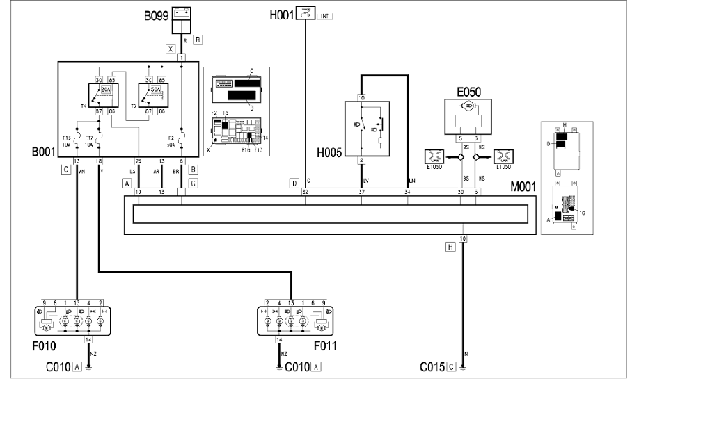 Napięcie z aku podawane jest na styk i cewkę przekaźnika T5. T5 podaje napięcie na cewkę T4 uruchamiającą jego styk podłączony do aku i podający napięcie na bezpiecznik F16 i F17 - osobny dla lewego i prawego światła drogowego. Po bezpiecznikach napięcie dociera do żarówek świateł drogowych. Drugie końcówki przekaźników T5 i T4 sterowane są osobnymi sygnałami z komputera pokładowego. Oba przekaźniki i bezpieczniki znajdują się w skrzynce w przedziale silnika. Jeśli nie świecą oba światła drogowe to uszkodzenie może istnieć w stykach lub/i cewkach przekaźników T5 lub/i T4, dopływie prądu z akumulatora bądź może polegać na awarii komputera pokładowego lub prozaicznie leżeć w wyłączniku świateł drogowych. Z uwagi na to, że styki manetki kierunkowskazów dają ludziom w kość to największe prawdopodobieństwo usterki moim zdaniem występuje w manetce. P. S. Dotyczy Grande Punta - na podstawie schematu zamieszczonego w książce Zembowicza.