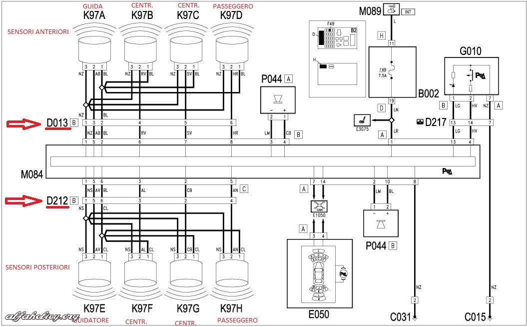 Tak załączyłem ten plik bo myślałem nad montażem czujników z przodu. W Alfie był jakiś numer centralki który obsługuje także przednie czujniki. Poza tym po tych dwóch schematach śmiem twierdzić że w grupie fiata wszystkie centralki są zamienne i różnią się tylko softem. Zastanawiałem się także po co są trzy kostki jeśli używa się tylko dwóch