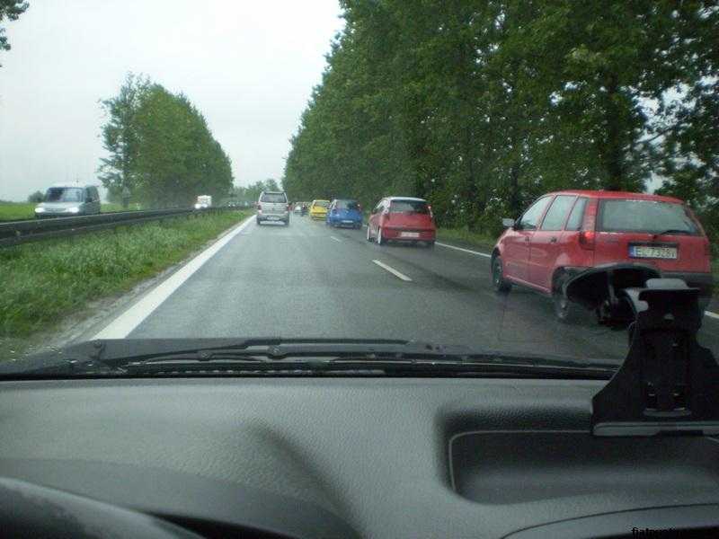 P.S. Właściciela czerwonego GP na blachach ST proszę o nie wyprzedzanie i nie zjeżdżanie przed wyprzedzany samochód na odcinku jezdni, na którym jest szuter, bo bycie bombardowanym po masce, szybie i dachu przez centymetrowe kamienie do najprzyjemniejszych rzeczy nie należy.