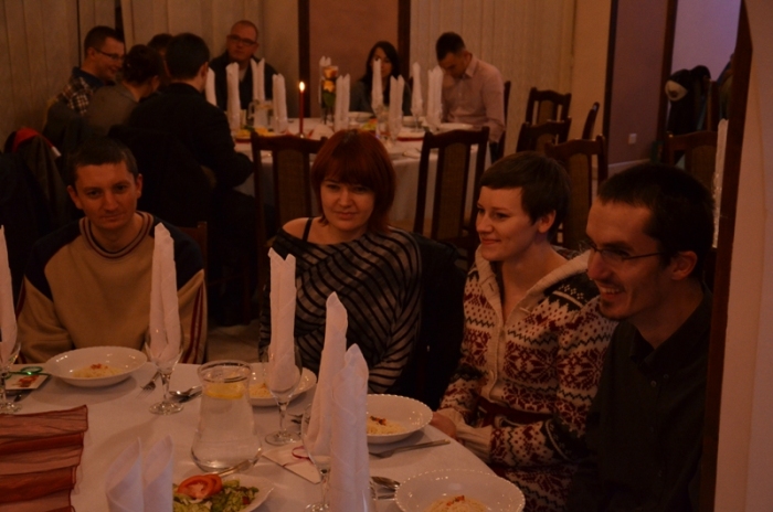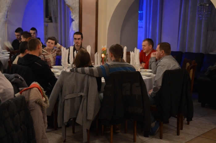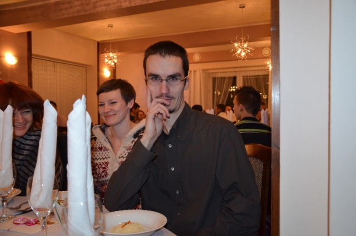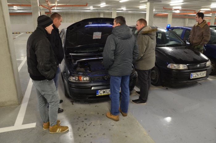 I wtem nastał dzień wybrany przez wielu i nastała godzina wspomniana w przepowiedni danej przed dniami wielu. Zabrawszy uprzednio współpasażerki do pojazdu swego udali się oni na miejsce wybrane, gdzie z połaci ziemi zalanej betonem ku niebu strzeliście wyrasta baner rozłożysty. A miejsce to powszechnie parkingiem jest zwane przed miejscem, gdzie kupcy swój towar gawiedzi oferują. Nie długą drogę przebyła wskazówka po zegara cyferblacie, gdy na horyzoncie pojawił się kształt im dobrze znany. Niejako to Marcin z owego rydwanu wysiadał, lecz tym razem to już nie Marcin a młodzieniec graczykiem zwany zajechał na miejsce przez wielu wybrane. Po zamienieniu uprzejmości wielu o drogę zapytaniu i licznych historyi opowiedzeniu złowroga sylwetka pojazdu w otchłani kolorze na srebrzystym felunku im się pojawiła. To Marcin, kompan naszych spotkań minionych swym nowym nabytkiem pochwalić się raczył. Nie zdążył no silnik się schłodzić za mocno gdy huk dobiegł ich uszu. Niczym pantera w biegu swym szaleńczym za ofiarą na dzikim matki natury łonie zmierzał ku ich postaciom bolid nietuzinkowy. Dwoje drzwi tylko posiadał a sylwetka jego zdradzała moc niebagatelną pod maską wielką jak połacie tych łąk zielonych, pagórków leśnych, szeroko nad błękitnym Niemnem rozciągnionych skrywaną. To kolejny gość z dalekich stron regionu naszego rozłożystego Adamovem zwany. Zapędziwszy się i na spotkanie ku nam lecąc zgubił no biedaka co w podróży raczył mu towarzyszyć a do zawitania w gronie naszym nielicznym uprzednio namówiwszy. Wysiadłwszy no z mobilu swego i w pośpiechu tłumacząc, iż za skarby świata i na miłość panienki najświętszej zaklinając się pojęcia nie ma co z drugim ziomkiem się stało. Wtem dobiegł ich uszu krzyk zza pleców obwieszczający pojawienie się na horyzoncie zguby o którą martwić się poczęli. To Massa poganiając swego wiernego acz mogącego sprawiać, iż zmęczonego już nieco życiem mechanicznego kompana podróży wpadł na dukt prowadzący ku wielu. Powitali i jego serdecznie bardzo. Tak jak w przepowiedni dane było tak i w rzeczywistości stać się miało. Nieopodal nich przyczaił się rydwan nieznany. Gołem okiem widoczny iż w zachodniej, krzyżackiej kuźni klepany. Na co dzień od stroju poniekąd Golfem zwany. Woźnica jednakże zachwyciwszy się na widok jakże wspaniały włoskiej motoryzacyji, zawstydzon tem co posiada nie podszedł do zebranych nieopodal wielu. Gdy wybijać miała godzina ustalona, tłum w niepokój nieco zdał się wpadać. Brakło jednego pojazdu na miejscu ustalonym. Jednak i On nie kazał długo czekać na osobę swoją wraz z towarzyszką życia pojawiwszy się wśród nich. Uprzednio nonszalancko zajechawszy okrąg kręcąc poniekąd jak sokół gdy łowów swych dokonuje. Niczym Filip z konopi przed oczyma zabranych wór czerwony nie przymierzając jako lico białogłowy jakiej się spojawił. Podarki dla dziatwy licznej wrzucać weń zaczęli. Dawali co mieli. Wszystko aby uśmiech najmłodszych zaskarbić sobie. Po wymienieniu kolejnych uprzejmości paru do rydwanów swych wsiedli i na miejsce wieczerzania raczyć się udali. Na miejscu już ludu sporo się zebrało. O miejsca na postój niemal jak o życie walczyć im przystało. Sala z daleka światłem i ciepłem swym zapraszała. Udali się więc w jej kierunku za ciepłą strawą stęsknieni. U progu postać znajomą spotkali. Tak im się nader tylko zdawało. Nie widząc pomyłki swej po piątaku jej przybili. Lecz to nie kompan ich był a kukła jaka dmuchana ku radości innym ustawiona, śnieżną postać nieco przypominająca. Zająwszy miejsce u stołu, uprzednio podarki w miejscu wyznaczonem porzuciwszy opłatkiem danym się wspólnie przełamali. Jako iż strawa zbyt obfita nie była to i na rozmowy czasu było pod dostatkiem. Tak więc na tematach o drutu ciągnieniu i o wężach ssących wieczór im upłynął. Po zjedzeniu i wypiciu wszystkiego co dane im było a do trudnych zadań nie należało to, po wykonaniu zdjęć wielu, nie czekawszy na wypalenie świec pozostawionych na stole udali się celem wieczerzania dalszego do czeluści podziemnych ogarkami jasnemi jak gwiazdy na bezchmurnym niebie rozświetlonych. Parkingiem podziemnym przez wielu zwanym. Tam spotkanie tradycyjną formę przybrało, gdzie każdy bez krempacyji wielkiej wsiąść do każdego bolidu mógł. Ba aby tylko. Co hojniejsi i przemierzyć parę metrów innym zezwalać raczyli. Ileż to wystać nogi potrafią. I one zmęczenie prędzej czy później odczuć raczą. Także i tym razem inaczej stać się nie mogło. Zmęczeni trudami wieczoru w moc atrakcji bogatego, poprzeplatanego historyjami przez każdego wypowiedzianemi udali się zebrani do domostw swych na spoczynek. Radzi jednak z poczynań swych i bogaci w nadzieję, iż na uśmiech najmłodszych chociaż najmniejszy zaskarbili sobie.