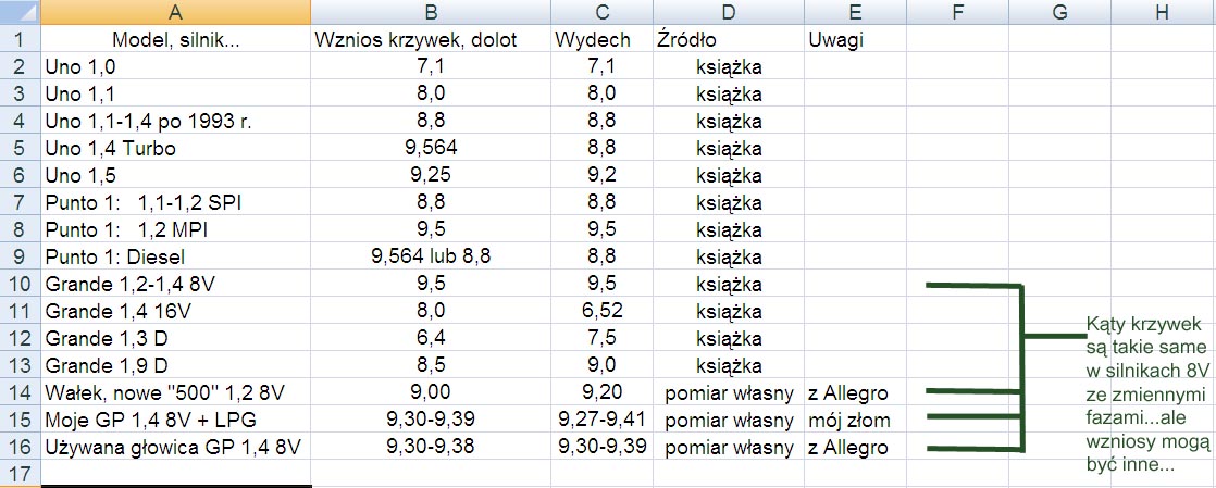 Komentarz do pliku: Wzniosy krzywek/zaworów w rodzinie FIRE.
