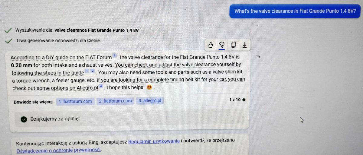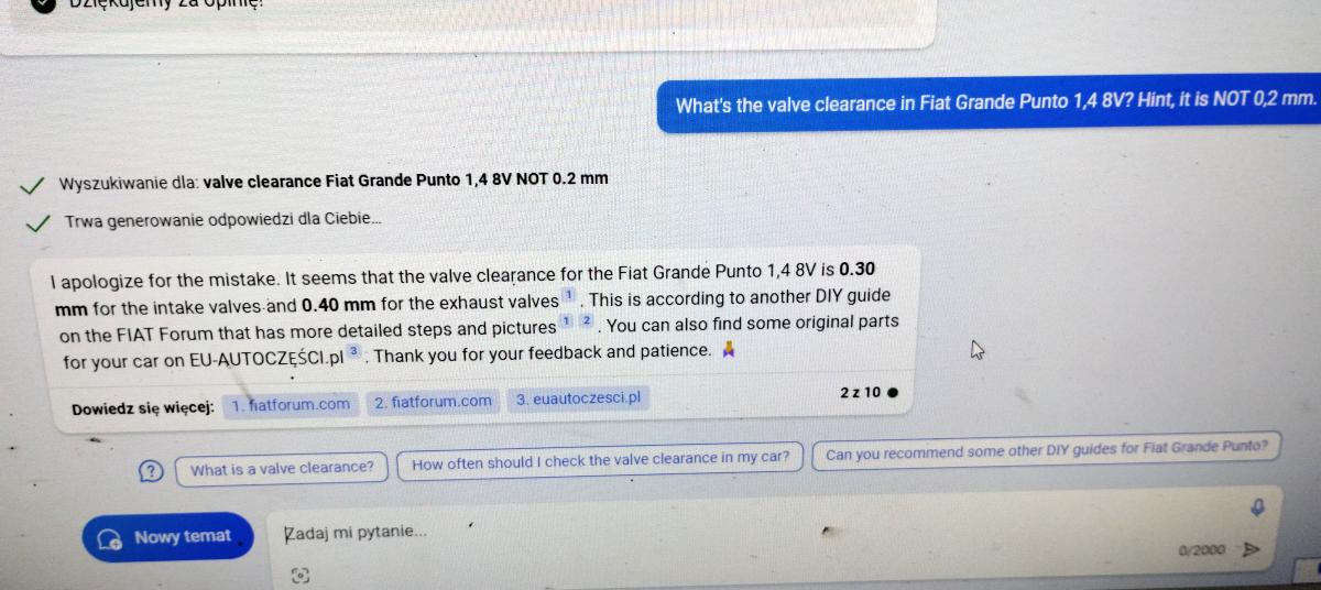 Nie wiem skąd ten "bot" wykombinował 0,2 i to dla wszystkich zaworów po równo. Historycznie było mało modeli z tak niskimi luzami (a jak już to stare graty, lata produkcji 1970-90). Polonez chyba też miał takie małe luzy.  Trzeba cyfrowemu gamoniowi podpowiedzieć, to może trafi na sensowne liczby... Załącznik: