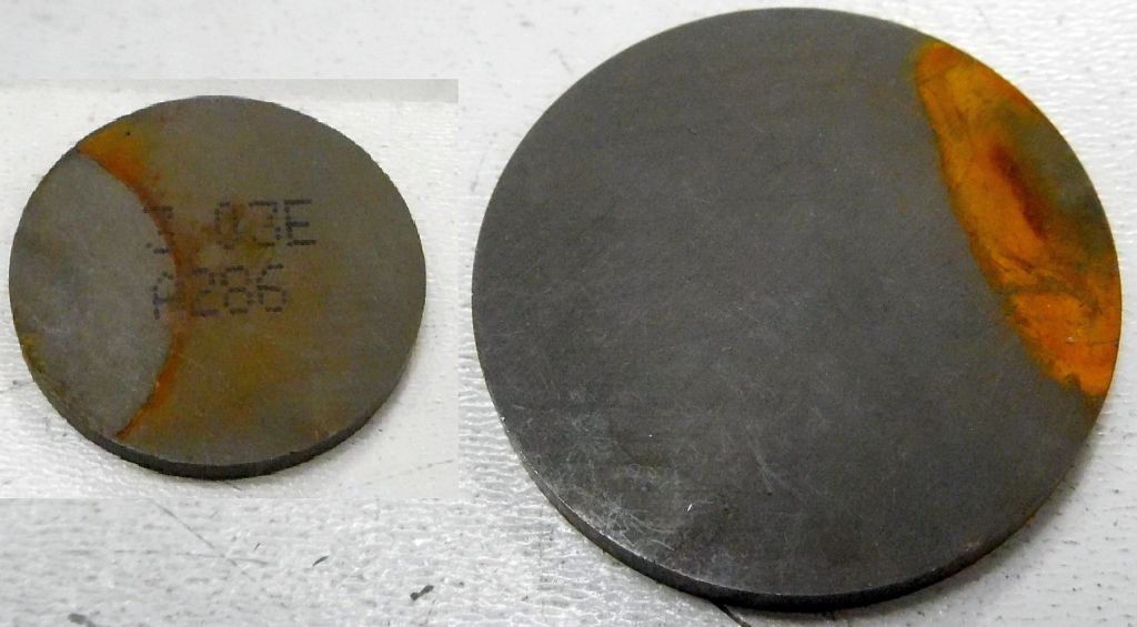 Prawdopodobnie nikomu nie udało się zejść poniżej 2,00 mm (interakcja z czytelnikami forum zerowa - nikt nic nie wie, nikt nie miał remontu głowicy, wstydźcie się). Przykładowe szklanki z używanej głowicy wyjaśniają częściowo ograniczenie praktyczne płytek. Otóż szklanki też się wycierają, z czasem płytka wpada głębiej. Tutaj lepsze mają głębokość osadzenia 1,71 mm, a gorsze równe 1,81 mm! Czyli najcieńsza płytka wpadnie w szklankę, krzywka będzie uderzać w krawędź szklanki, masakra. "Na szczęście" nikt nie dojdzie do 1,8x mm, bo typowo w okolicach 2,00-2,15 grubości płytek głowice trafiają do remontu. Załącznik: