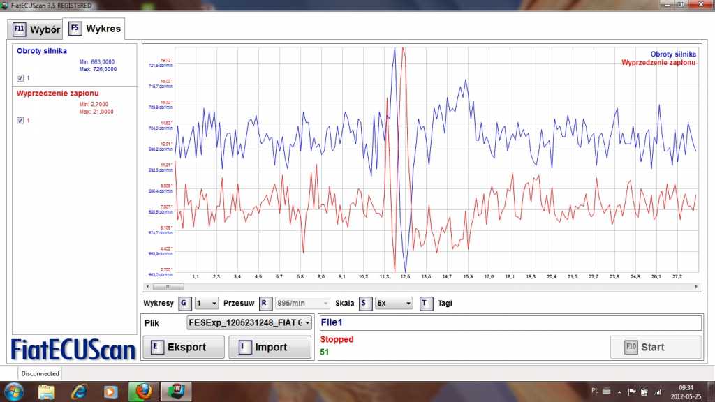 Zrobiłem wykres wyprzedzenia zapłonu GP 14. 8V ,jest bardzo niestabilny.Porównałem z wykresem Punto 2,i tam wartość wyprzedzenia na wolnych obrotach jest stała 10stopni.Czy to jest prawidłowe?