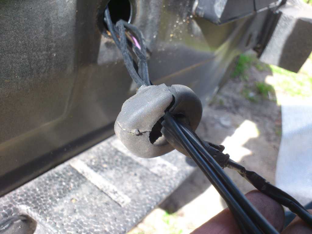 I teraz zaczynamy przeciągać kable do wnętrza samochodu tutaj rozwierciłem i przeciąłem tą gumowe przelotkę, bo niemiałem jak ich przeciągnąć i zabezpieczyłem sylikonem: Załącznik: