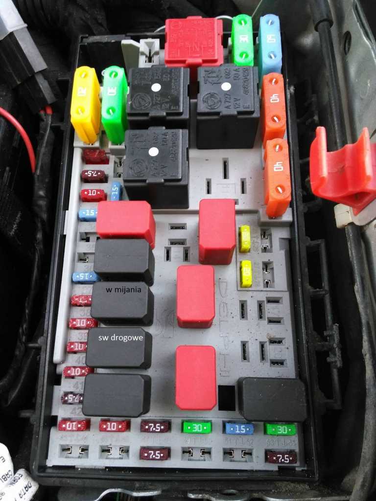 Tak wygląda moja skrzynka z bezpiecznikami :  Co mogę powiedzieć, przy przełączaniu manetki z pozycji świateł wyłączonych na światła mijania słychać takie "cyk" ze skrzynki z bezpiecznikami, dodatkowo mogę jeszcze powiedzieć, że na pozycji włączonych świateł mijania kiedy wyjęte były pierwszy oraz trzeci od dołu duży czarny przekaźnik i wkładałem je na miejsce, to dało się wyczuć że coś tam się dzięje, słychać było właśnie takie "cyk" Ktoś ma jakiś pomysł ? Oczywiście pozamieniałem wszystkie czarne z czarnymi i czerwone z czerwonymi i nadal nie świeci ...