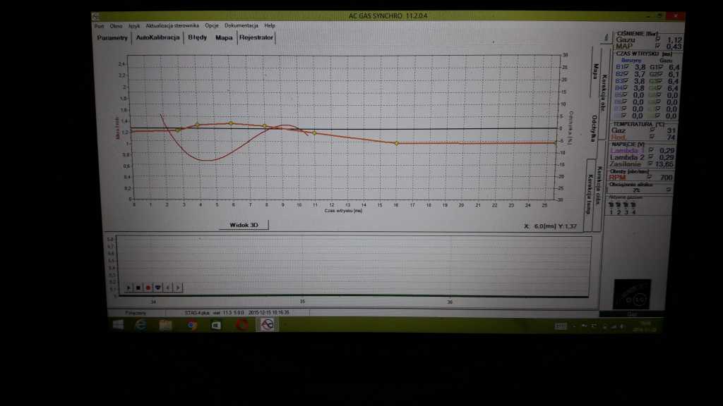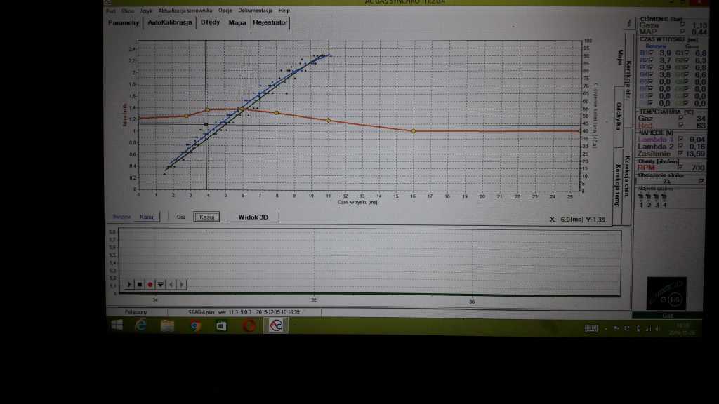 4) Dlaczego tyle powtórek i tylko taki efekt? Nie mam wprawy w przesuwaniu punktów mnożnika góra-dół. tzn. nie wiem ile kliknięć "strzałką do góry" na klawiaturze, będzie na tyle wystarczające, co by wykres LPG odpowiednio podskoczył do góry. Mam wrażenie, że jest to manipulowanie na "czuja". Może wiesz czy jest jakaś zasada jak to czytać na wykresie. tzn. np. po pierwszym przejeździe (20161126_153543.jpg) wywnioskować o ile muszę do góry podbić mnożnik, tak żeby było bardzo blisko wartości docelowej?