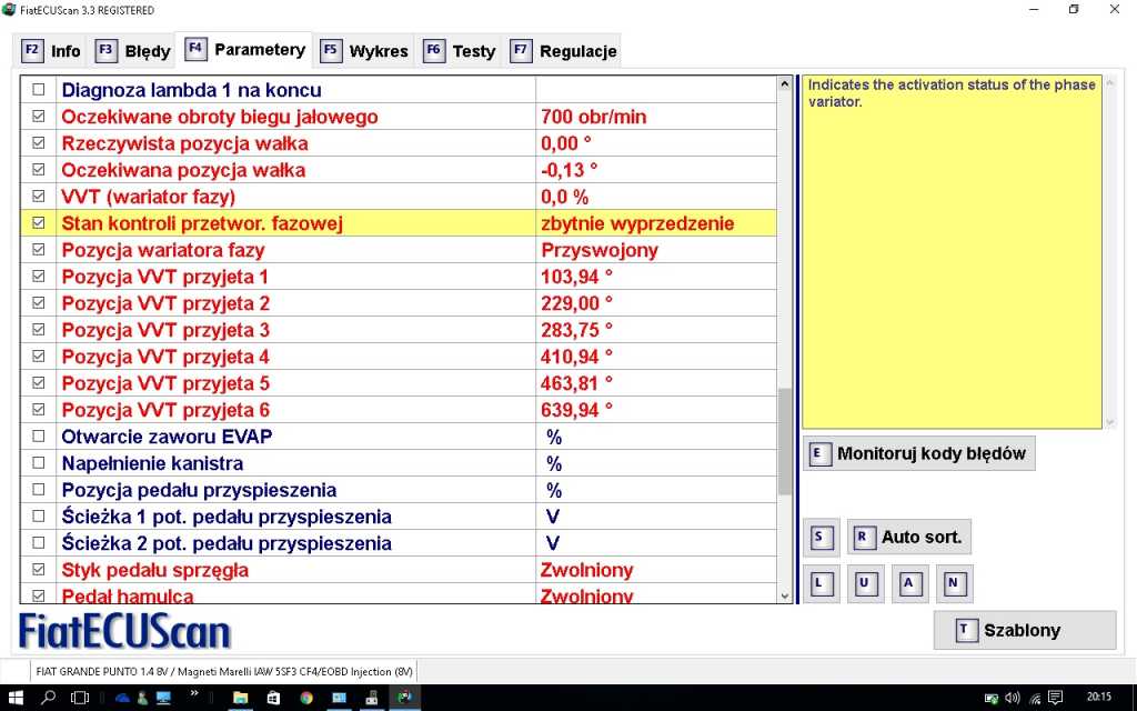 doszedłeś może czy wskazania te są prawidłowe? Jeżeli chodzi o zbytnie wyprzedzenie to mam tak samo i się zastanawiam czy jest to poprawne. Zastanawia mnie także dlaczego pozycja wariatora fazy zmienia się na przyswojony dopiero po kilku chwilach po uruchomieniu silnika.