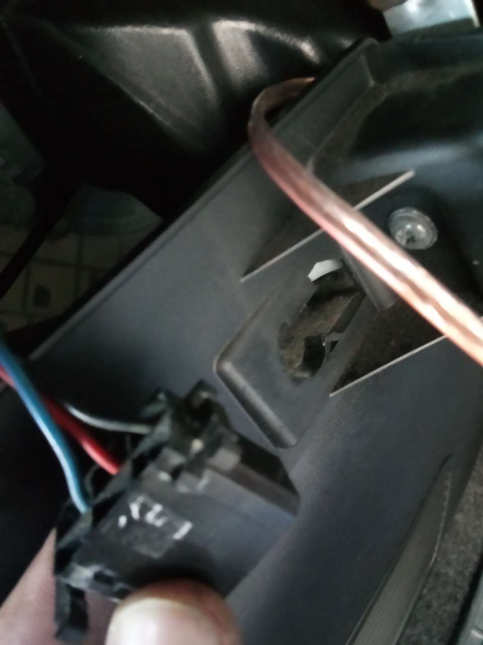 Podczas montażu tylnych głośników ściągnąłem kilka plastików, żeby ładnie przewód położyć. podczas przekładania przewodu za schowkiem w tunel radia natknąłem się na wypiętą kostkę.