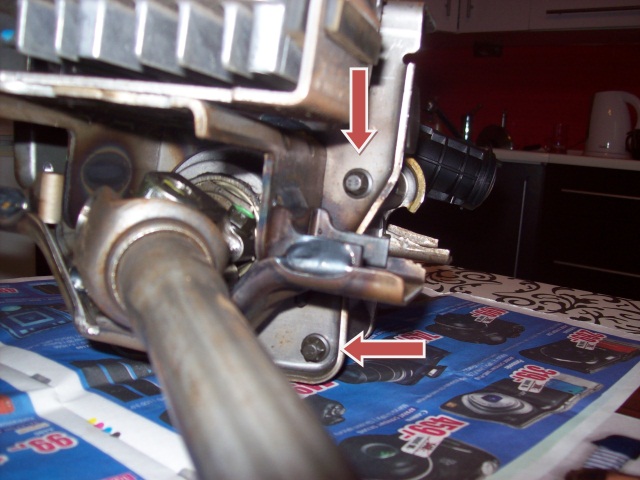 Wyciągamy czujnik:1. Odkręcamy 4 śrubki (czerwone strzałki na zdjęciu poniżej) z tyłu kolumny, klucz nasadowy 8.