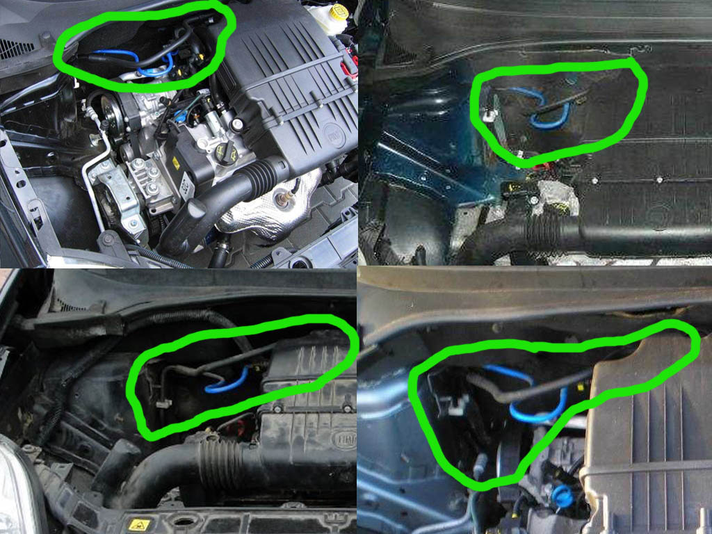 Nie pamiętam, czy czarny przewód jest plastikowy, czy gumowy (za późno i za zimno, aby teraz iść do samochodu), czy inny materiał. Ale, nieumiejętność korzystania z wyszukiwarek (wyszukiwanie obrazów), to wstyd w 21 Wieku. Wystarczy chwila i wiadomo jak ma wyglądać dany samochód (czy konkretny silnik) pod maską (albo cały silnik, wymontowany, lepiej widać osprzęt). Tak wyglądają nowe i używane Grande 1,4 8V. Wszystkie mają tam czarny wąż i to fabrycznie bez opasek (klejony/zgrzany?), może to zwróciło uwagę ciecia. Załącznik: