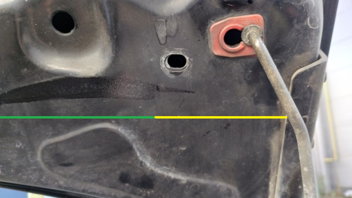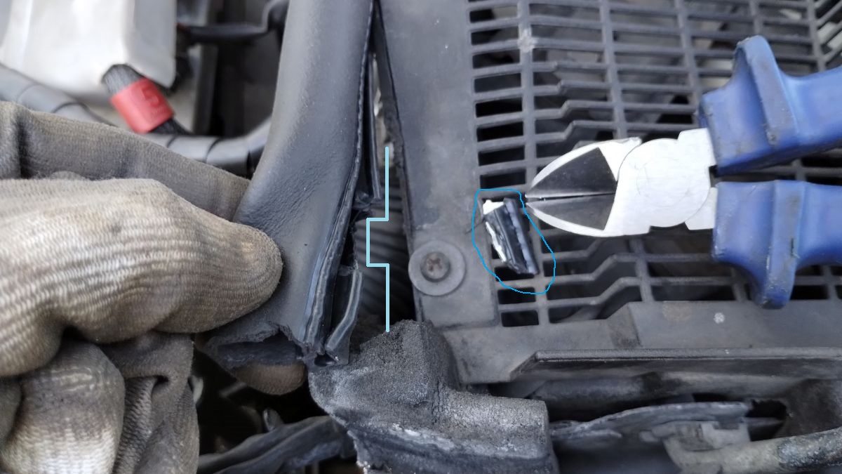 Końce nie przylegają do maski, ale to nie problem. Rynienka jest utworzona i woda leci na boki, zamiast kapać przez gąbkę do komory silnika, na skrzynkę bezpieczników itd.
