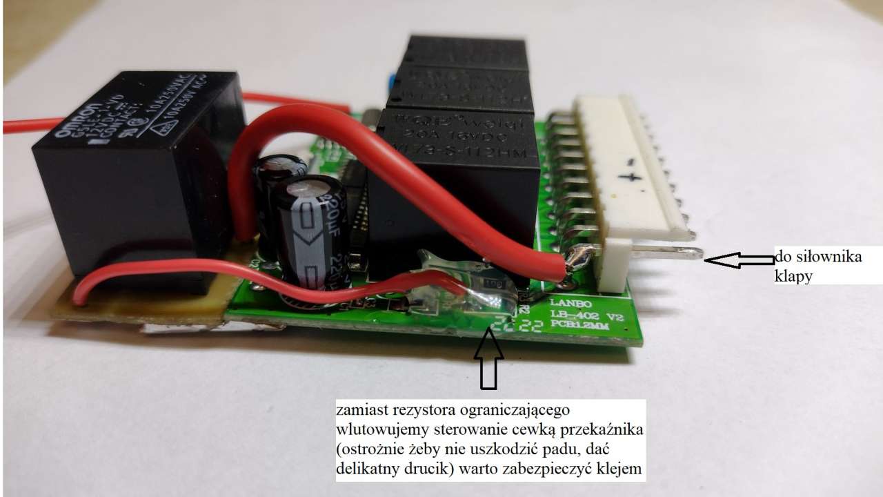 Sterownik z wykonanymi modyfikacjami przed montażem w samochodzie:
