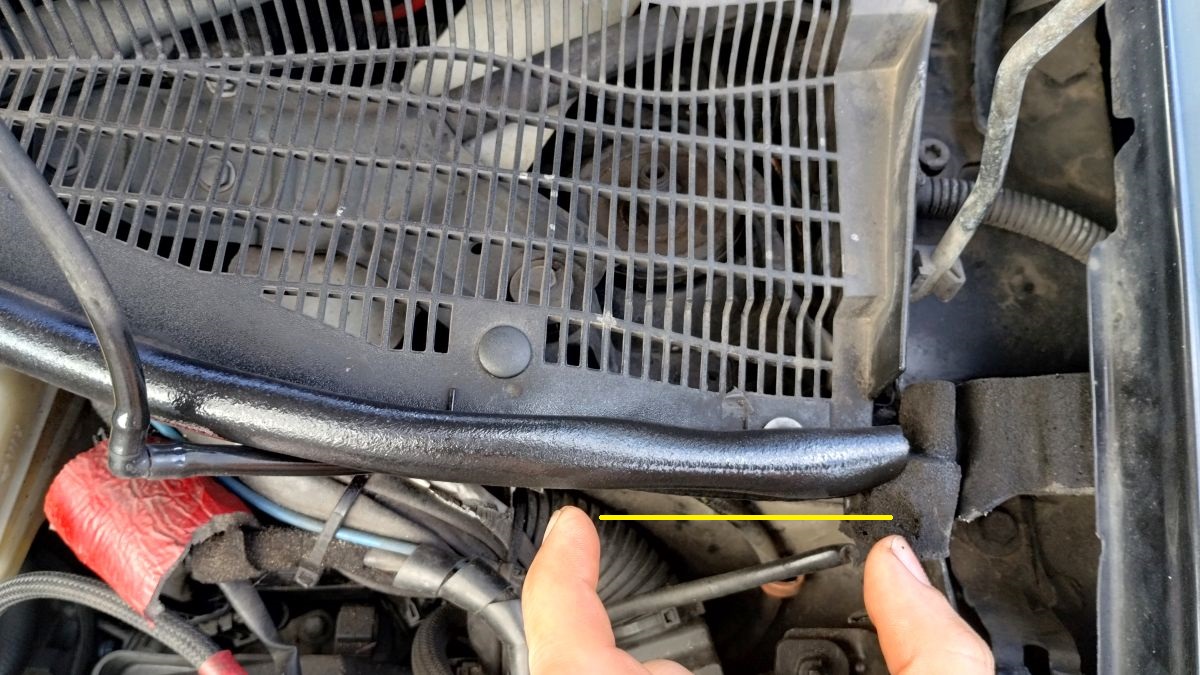 Końce nie przylegają do maski, ale to nie problem. Rynienka jest utworzona i woda leci na boki, zamiast kapać przez gąbkę do komory silnika, na skrzynkę bezpieczników itd.