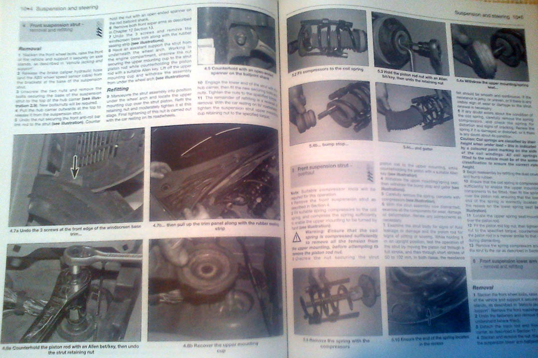 Decyzja o wymianie, diagnoza, wcale nie musi być oczywista (przeglądy coroczne prawie nie wykrywają postępującego zużycia, jedynie zero-jedynkowo: albo amor jest w miarę OK, albo totalny trup, stany pośrednie przejdą test, badanie nigdy nie przyjmuje wartości skrajnych, ani 0, ani 100% nie zobaczysz, fizycznie niemożliwe). Niepokojące oznaki to: olej cieknie, amortyzator mocno gnije, ma wyczuwalne ręcznie (szarpiąc) luzy, a po wymontowaniu tłoczysko wpada do środka. Kierowca się przyzwyczaja do pojazdu i stopniowego zużycia "zawiasu" - różnicę na lepsze czuć dopiero po wymianie. Tutaj auto przed wymianą troszkę pływało jak ponton, ale bez przesady. Po naprawie jeździ jak gokart. Jest sztywne i pewne prowadzenie.