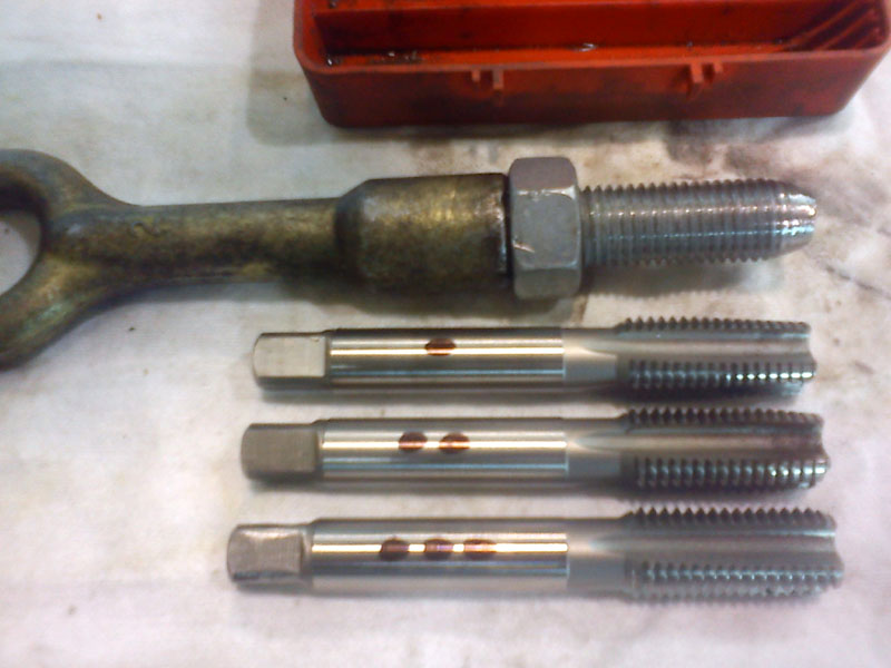 5. Ucho od starych Fiatów przerabiamy pod Grande. Potrzebny jest tylko gwint, najlepiej ze śruby (nowej o najwyższej klasie jaką się da zdobyć), pręty gwintowane np. z Castoramy/OBI są za słabe! Długość ucha powinna wynosić około 12 cm (tyle się wkręca i "znika" w zderzaku). "Pręt" wkręcamy na mocny klej do gwintów i blokujemy przeciwnakrętką (też na klej). Żadnego spawania, ani blokowania przez kołki/zawleczki (bo wymaga wiercenia). Praktycznym problemem jest też często zanieczyszczenie gwintów (i ucha i po stronie samochodu). Dlatego można wykonać pseudo-gwintownik, aby czyścił gwint przy wkręcaniu. Nie ma na to polskiej nazwy, po angielsku jest to "thread chaser" (narzędzie do czyszczenia istniejącego gwintu, NIE do nacinania nowego). Załącznik: