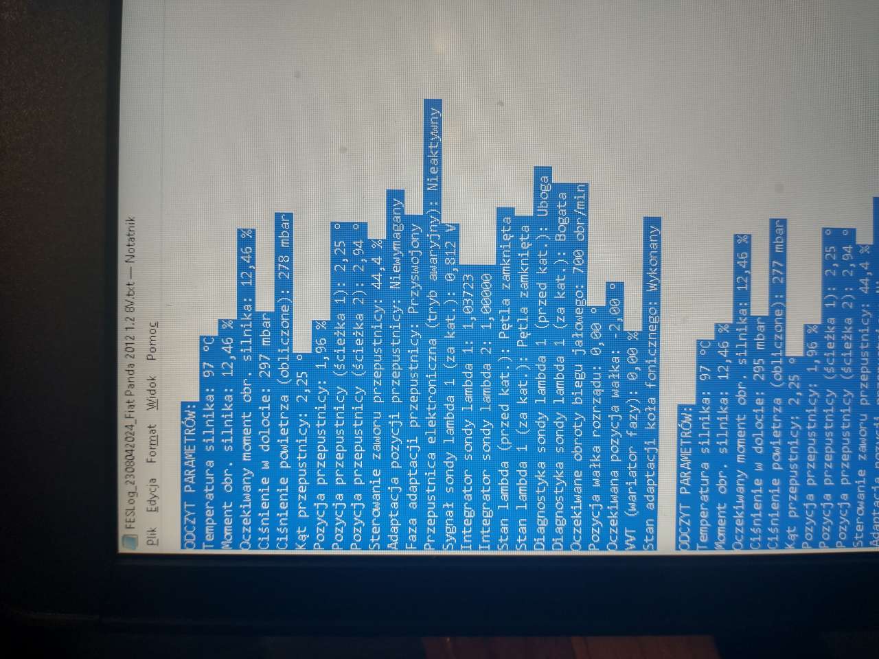 mes coś wykresu sond mi nie pokazuje, może jeszcze to ogarne, na razie to. dzieki. W czasie jazdy, silnik rozgrzany.