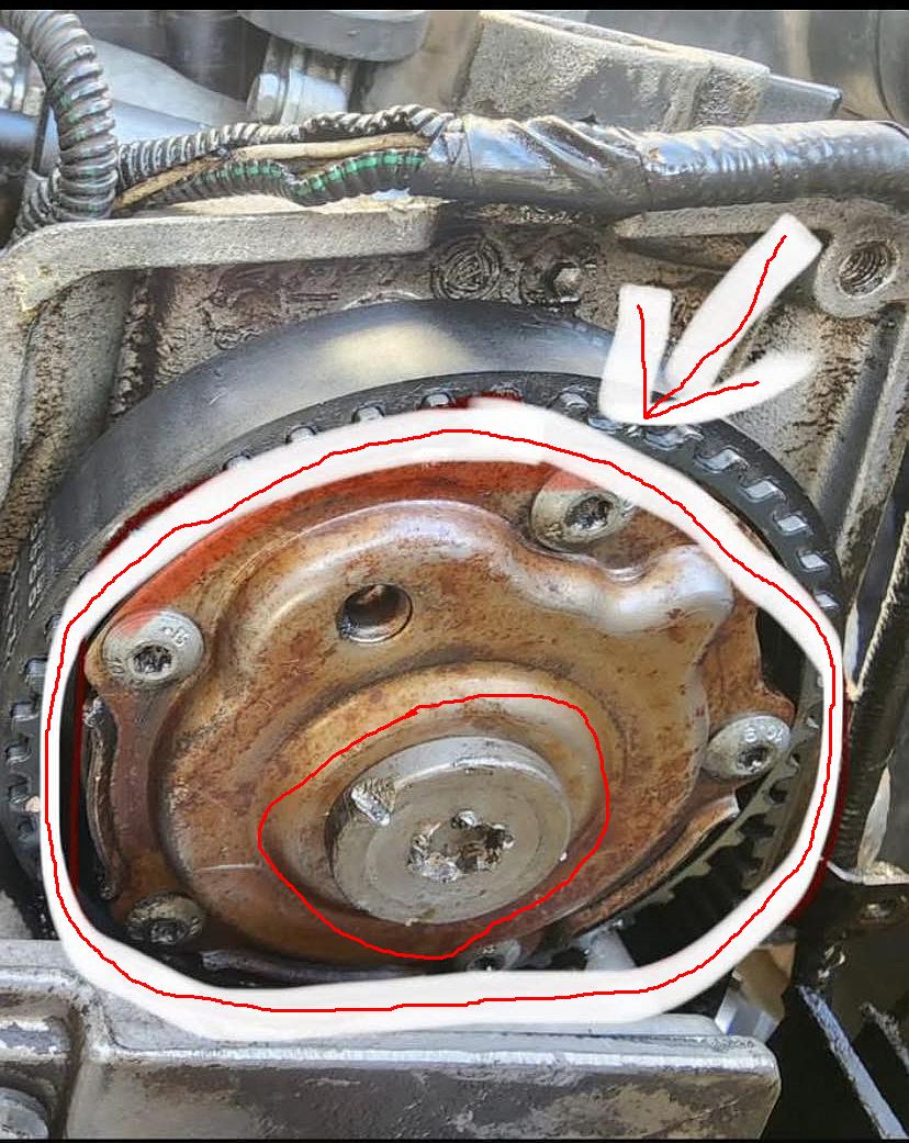 ) kliny/wpusty na kołach, ale na rozrządzie. Ten sam durny projekt. Na wale korbowym pewnie to samo. Czyli tam mają dwa "kliny" do zerwania. A my białasy w EU tylko jeden (mamy "lepiej").