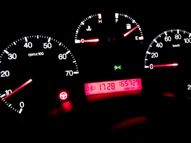 Jeśli nie czujesz się na siłach nie rób tego bo można więcej zepsuć niż zrobićCo będzie potrzebne: - licznik - lutownica kolbowa - pęseta - taśma z ledami (można kupić OBI Castorama itp) - duuuużo cierpliwości Wyciągamy licznik: topic13855.htmlRozbieramy licznik: - z przodu zdejmujemy plastikowa szybkę (jest na zatrzaskach) - wyciągamy wskazówki (dwoma palcami wystarczy chwycić i wyjdą) - z tyłu zdejmujemy plastik i ukaże się nam takie coś:  - dolne blaszki odginamy do siebie - w środkowych wpychamy cypelki aby nie blokowały płytki - wyciągamy płytkę:  Kolory oznaczeń: - czerwony: podświetlenie zegara - niebieski: podświetlenie tarczy - żółty: podświetlenie wskazówek UWAGA CO DO WERSJI HGT: Wskazówki są podświetlane 2 diodami naraz. Dodatkowo należy usunąć 2 rezystory które są przy diodach podświetlenia tarczy obok wskaźniku temperatury i paliwa.Lutowanie: Na spokojnie, nie spieszyć się i nie nagrzewać mocno punktów lutowniczych bo odpadną. Lutowanie należy przeprowadzać szybko i sprawnie, podobnie z wylutowywaniem. Aby nie pomylić biegunowości diod przed wyjęciem zobaczyć w którym kierunku są wzorki i po włożeniu nowej należy ustawić ją w takim samym kierunku. Aby sprawdzić czy dioda nie została upalona ustawić miernik na pomiar rezystancji i przyłożyć do diody, efekt powinien być taki:  Jak już wymienimy diody idziemy do samochodu i sprawdzamy czy wszystko świeci tak jak powinno być:  Jeśli wszystko jest w porządku wracamy do domu i skręcamy licznik ale nie zakładamy przedniego, przezroczystego plastiku. Ustawianie wskazówek: - w standardowym liczniku nie ma problemu, wkładamy wskazówki i kręcimy do maksymalnej wartości, dalej cofamy i jak poczujemy opór to ustawiamy je położeniach na 0 i minimum, idziemy do samochodu i patrzymy co się dzieje jeśli coś odbiega to korygujemy - w wersji HGT nie ma oporu i należy to robić w samochodzie metodą prób i błędów, dla przykładu wskaźnik paliwa ustawiamy np na środku przekręacamy kluczyk w jedna stronę a potem w drugą i korygujemy. To chyba wszystko