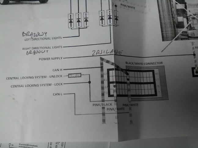 na drugim schemacie znowu mam pokazany black/white connector (ten najwiekszy) i że należy can h podłączyć do kabla różowo czarnego unlock i lock zmostkowac i podłączyć do różowo białego przewodu natomiast can l podłączyć do drugiego różowo białego przewodu