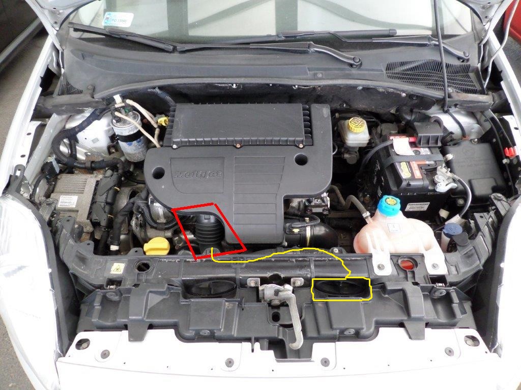 U mnie idzie rura dokładnie jak zaznaczyłem żółtą kreska do tego jajowatego otworu. Tak jak zapisał kolega Gigavat pobiera powietrze przez ten jajowaty otwór.