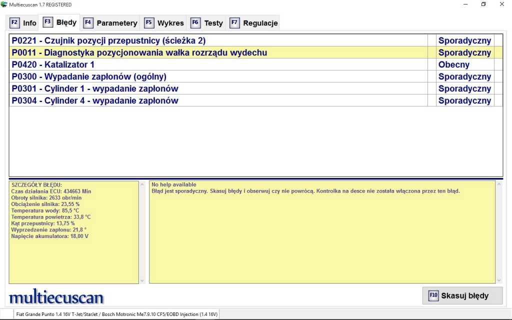 2) W ostatnim czasie pojawia się także błąd "Camshaft position". MES widzi to jako "diagnostyka pozycjonowania wałka rozrządu". Ten check pojawia się od momentu gdy mechanik wyjął i włożył z powrotem czujnik fazy. Nie wiem czy to przypadek, ale wcześniej ten błąd się u mnie nigdy nie pojawiał.