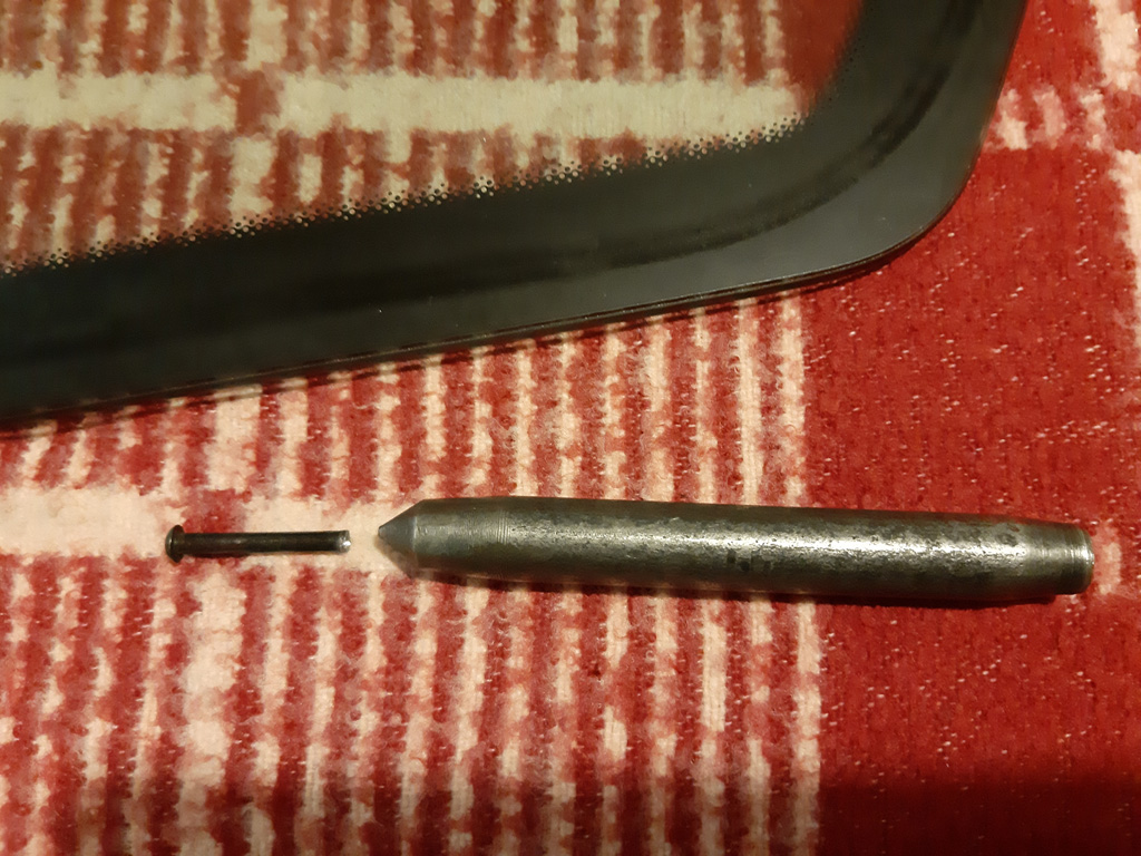 Próbowałem wybić nit ale ani drgnął. W związku z tym, iż wcześniej zaopatrzyłem się w kilka zapasowych (numer części na górze poradnika) postanowiłem go rozwiercić. Nawet po rozwierceniu wymaga on wybicia.