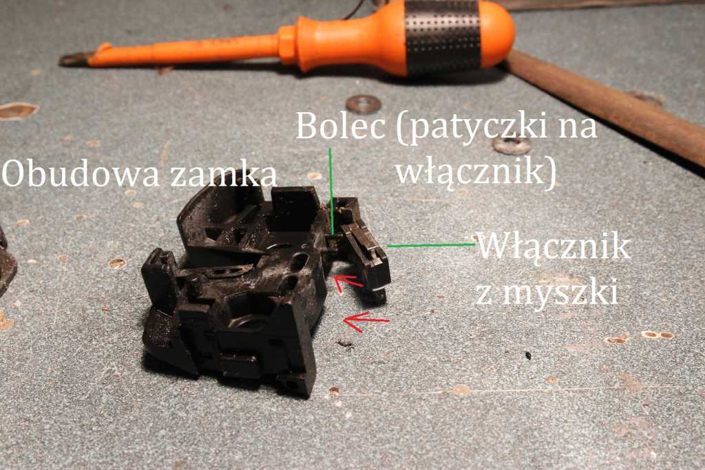 Co teraz? Kupować nowy rygiel (zamek) z pstryczkiem wyłączniczkiem, czy zabawić się? Obdzwoniłem szroty pobliskie i nie mieli. Na allegro znalazłem za 40 zł + przesyłka - zostawiłem jako ostateczność.