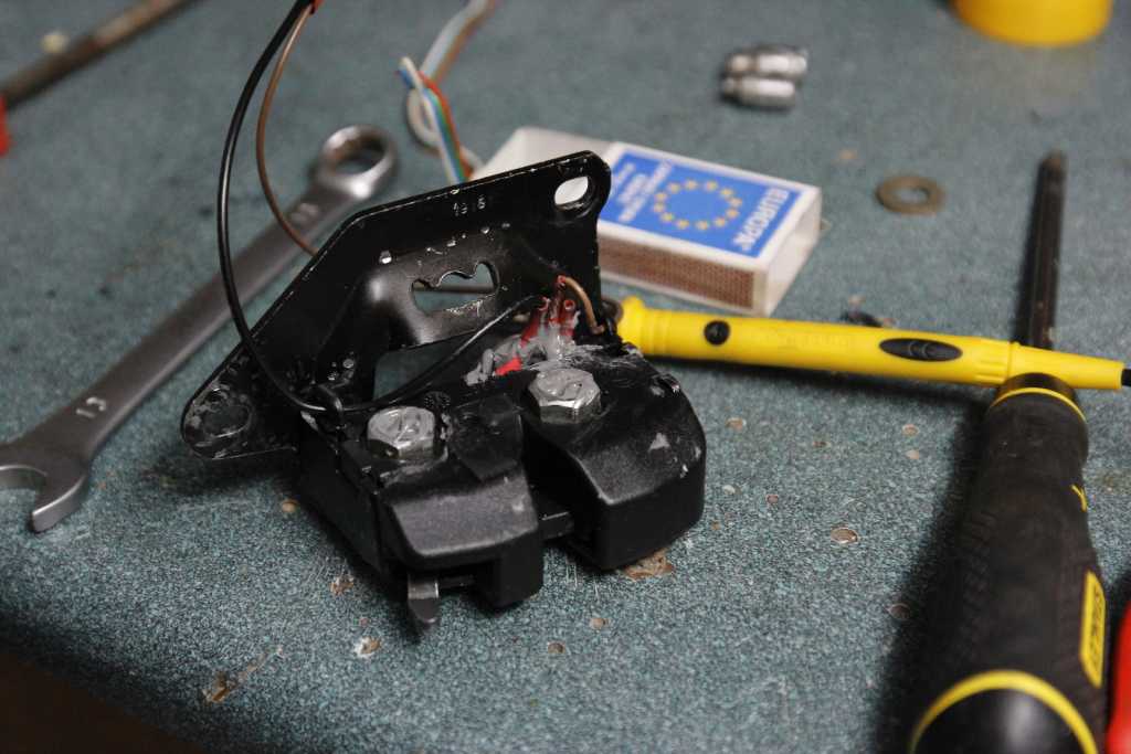 Zacząłem więc pomiary. Okazało się, że napięcie jest ale tylko jedna żyła +. Masę uznałem za zagubioną. Przeszukałem forum i doszedłem do wniosku, że zamek w klapie nie ma odpowiedniego włącznika, reagującego na zamknięcie / otworzenie klapy.