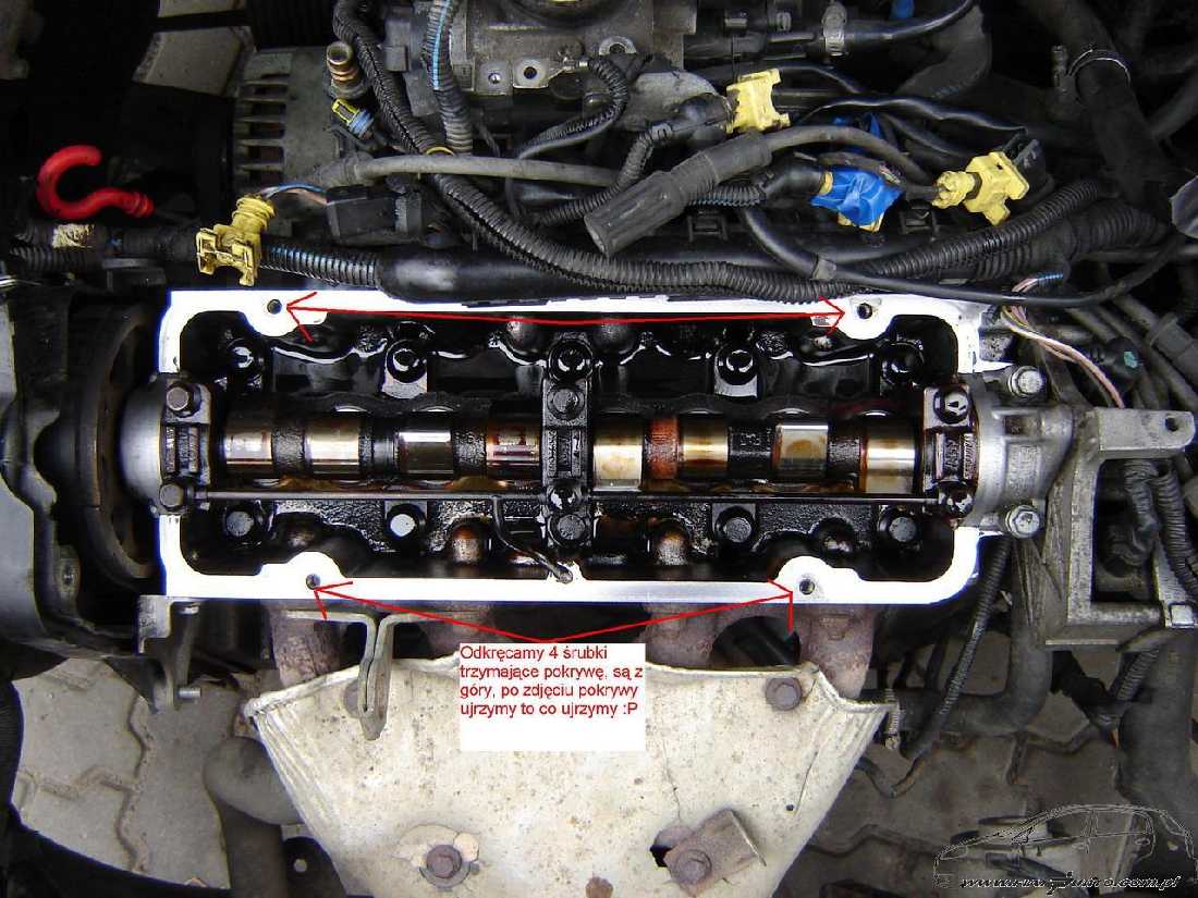 Później odkręcamy kluczem 10tka nasadowy, 4 śrubki w pokrywie zaworów, po ich odkręceniu, wyjmujemy pokrywę.