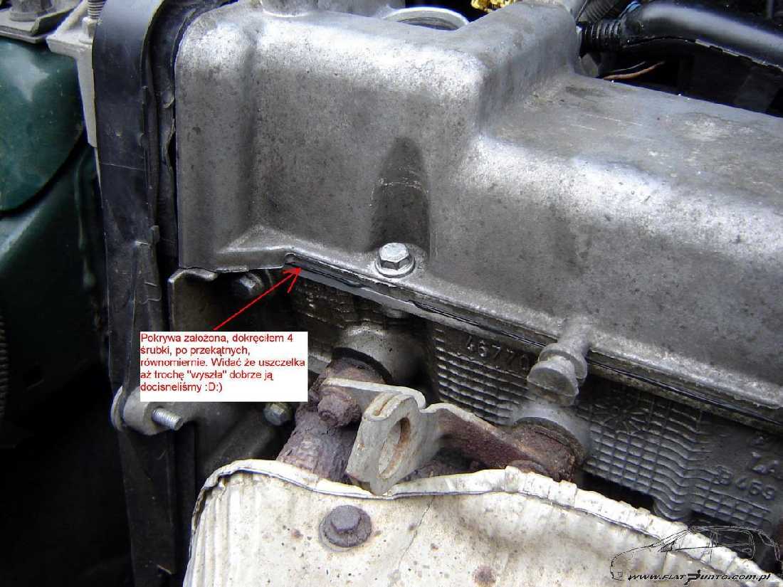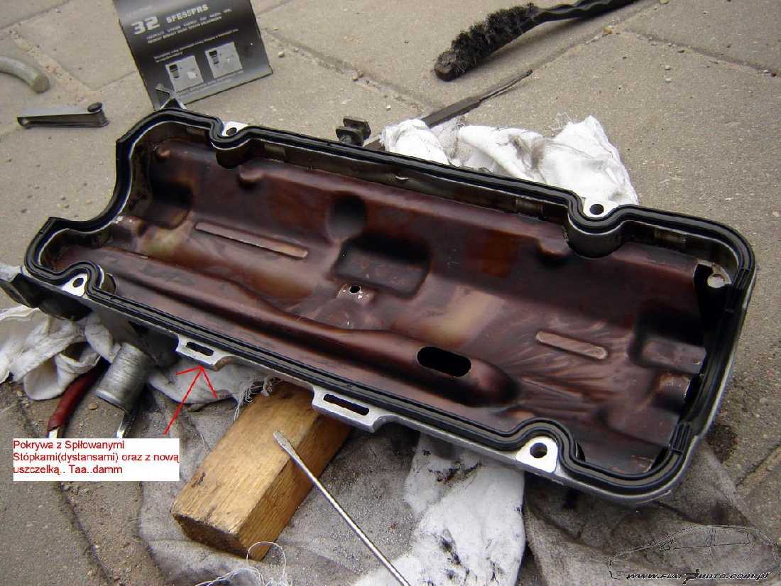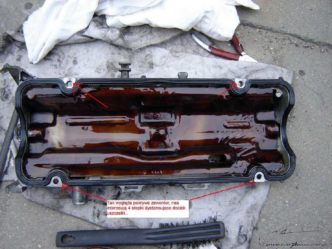 Uszczelkę wkładasz w pokrywę, potem wyciskasz na nią 1mm śr. pasek silikonu i zakładasz. [ Dodano: 01 Lip 2008 21:08 ]Po 2kkm sucho, z resztą wcześniej też był taki patent, 55kkm i sucho do wymiany wałka rozrządu [ Dodano: 01 Lip 2008 21:35 ]Jak już będziesz podnosić pokrywę to sprawdź luzy