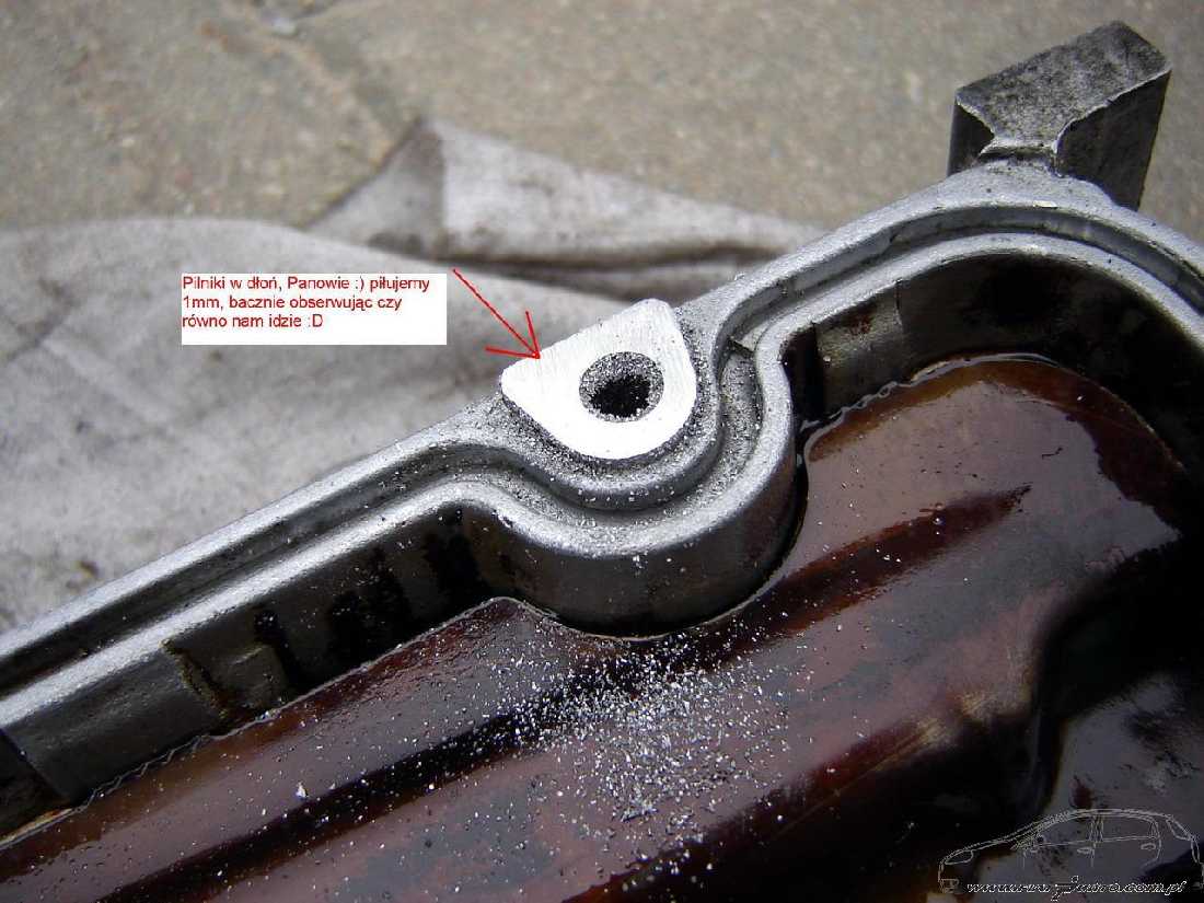 Po wyjęciu zdejmujemy starą uszczelkę, pozbywamy się resztek oleju, i zaczynamy piłowanie.. na początku zdzierakiem, a na koniec gładzikiem. Spiłować mamy ok. 1mm z każdej ze stópek, musimy to zrobić równomiernie.